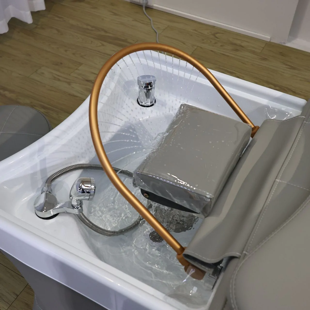 This cushion supports the natural curve of the neck. As a result, clients feel more relaxed during washing and scalp treatments.